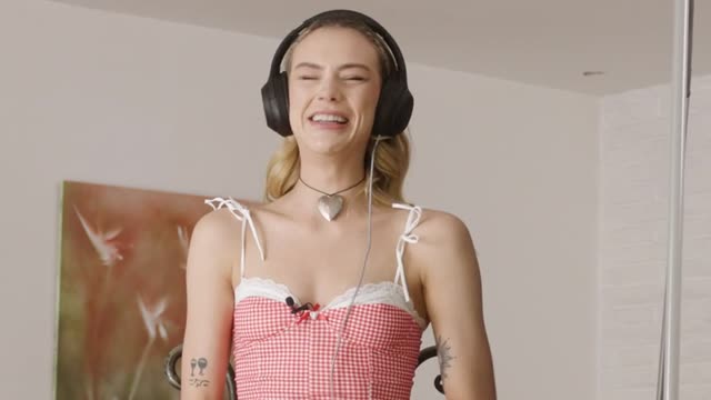 Flat Teen Juniper Ren Sensually Strokes and Fingers Her Bald Slit