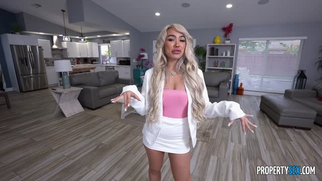 Megan cleans the room in a short dress, this catches the attention of Sam, who begins to seduce her