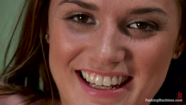 Sexy girl next door Krissy Lynn bound in strict device bondage and throatboarded by 2 cocks!