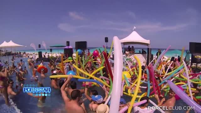 ThreeLucky Guys get to party with pornstars. 6some party in the pool.